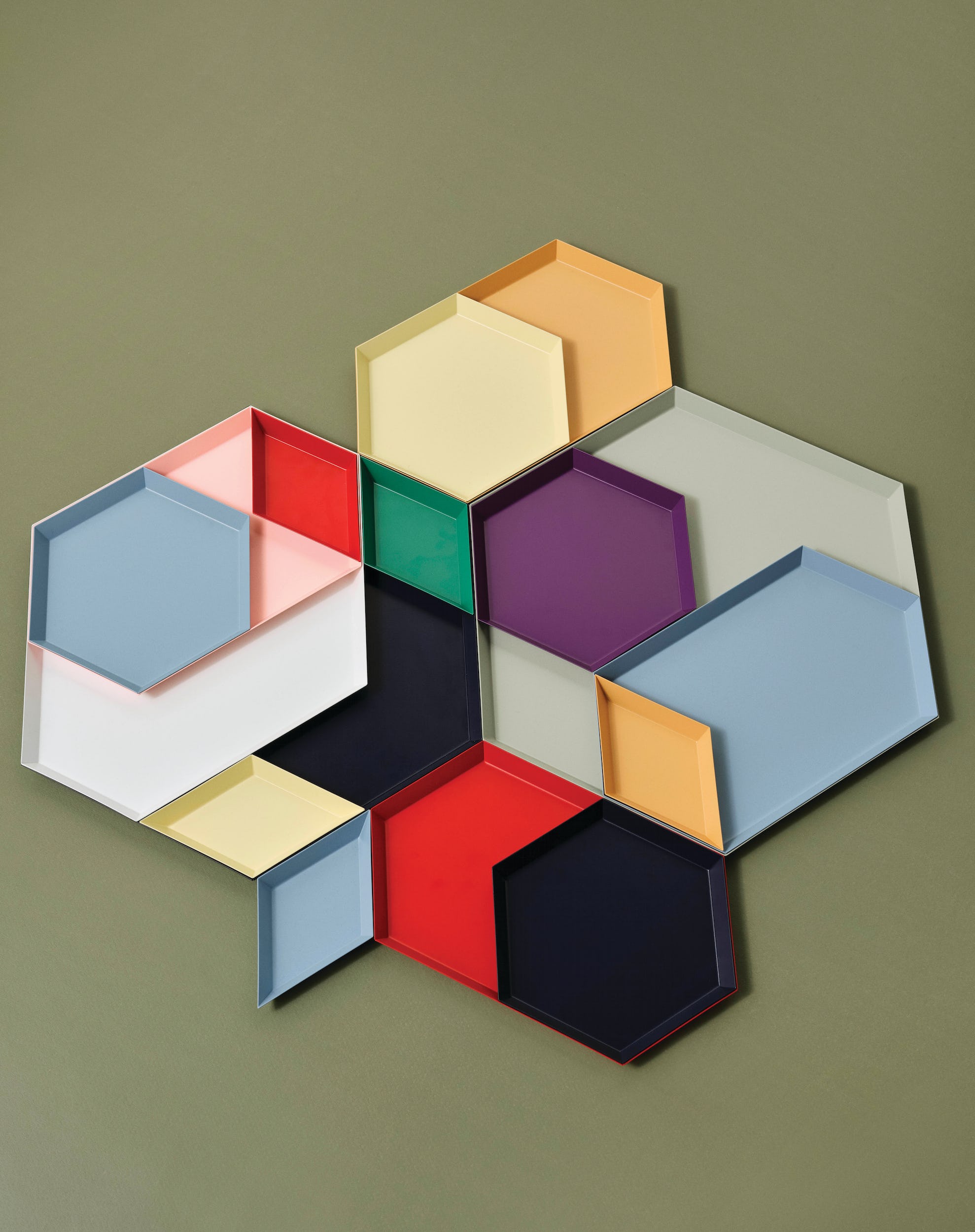 For an extra kick, try the Kaleido trays by Danish firm Hay, whose interlocking shapes make arranging the trays themselves a pleasure: