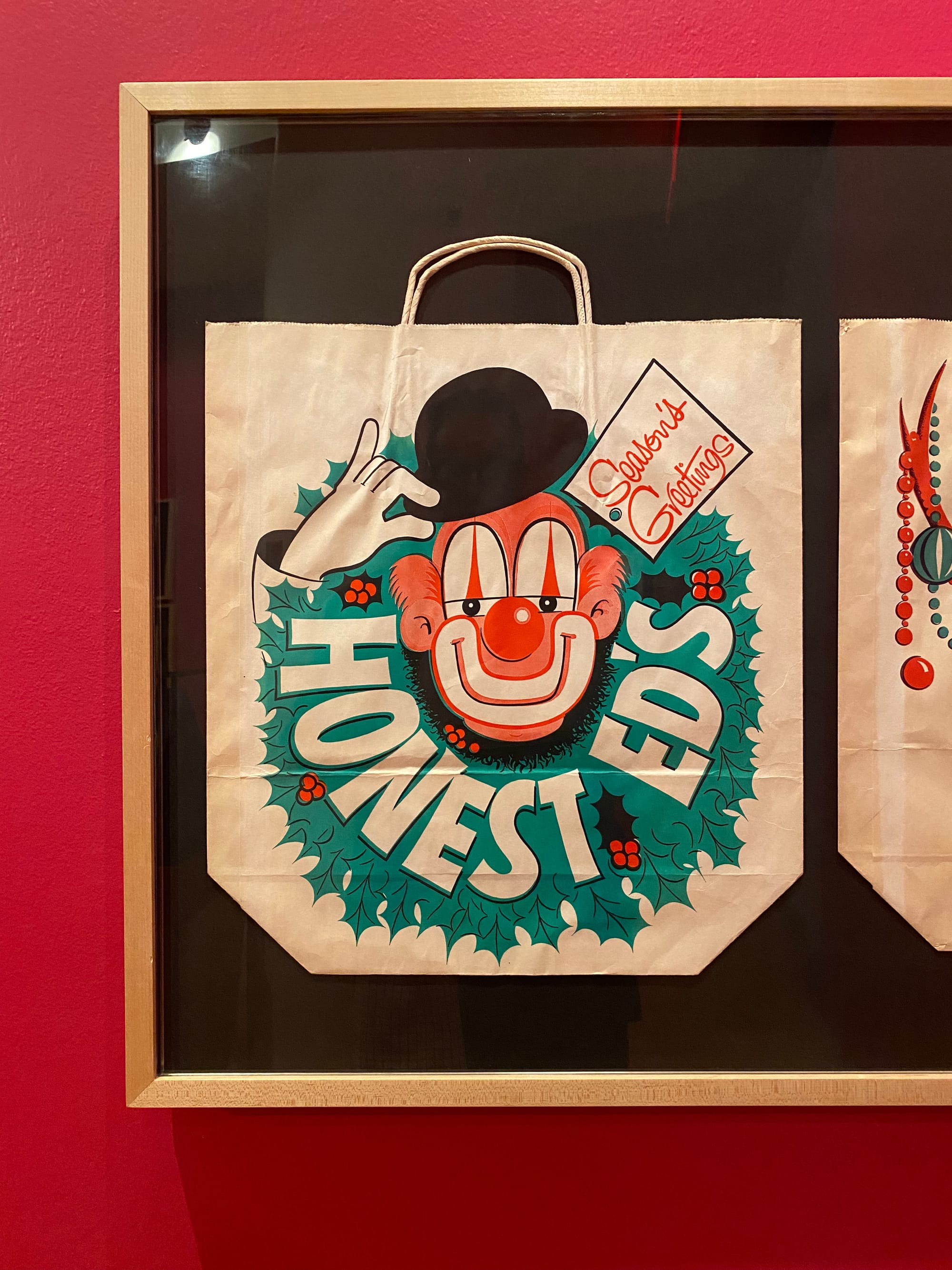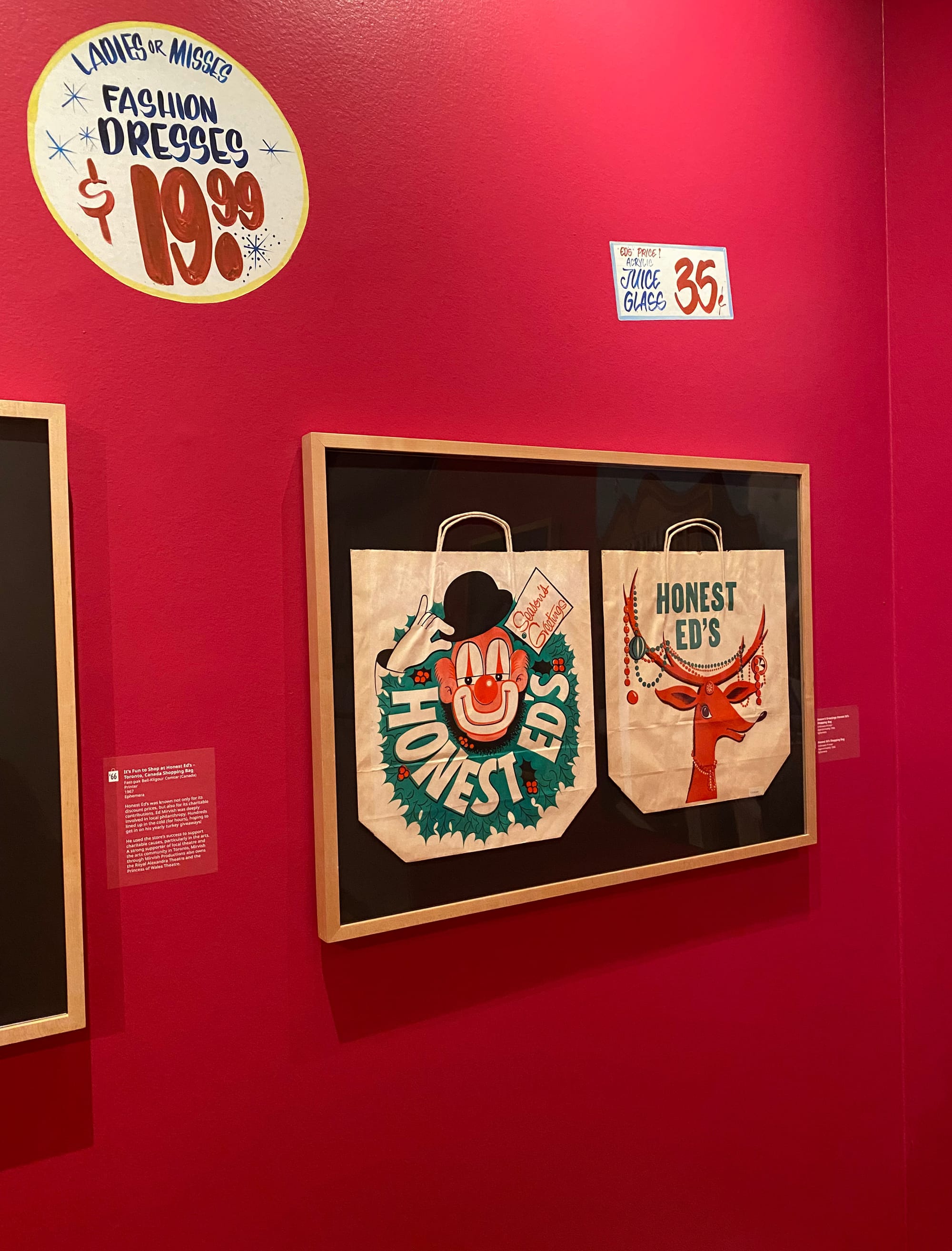 Those thoughts tumbled through my mind a few years back, when I snapped the photo above at Williams Design, a vintage shop in the Junction. I couldn't believe these paper Honest Ed's bags, looking decades old based on their design and condition, had survived into the present. The cartoony lettering made me grin, instantly reminding me of that beloved bargain funhouse at Bloor and Bathurst that closed permanently in 2016.